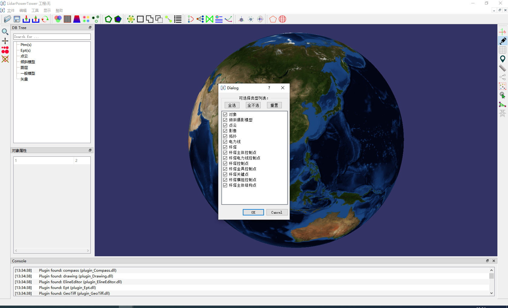 - 可选择的对象包括杆塔(.ptm)、杆塔解析关键点(KeyPoint)、点云(.las)、三维地形和三维模型(.osg/.osgb)等。